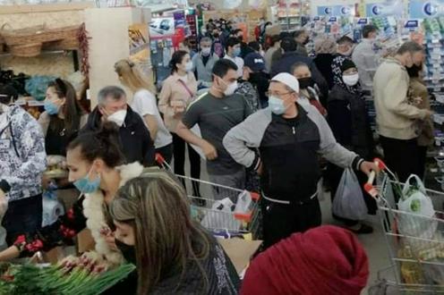 Shoppers at an Uzbek supermarket just before the ban on car travel entered into force. Photo from Facebook.com/zkhashimov