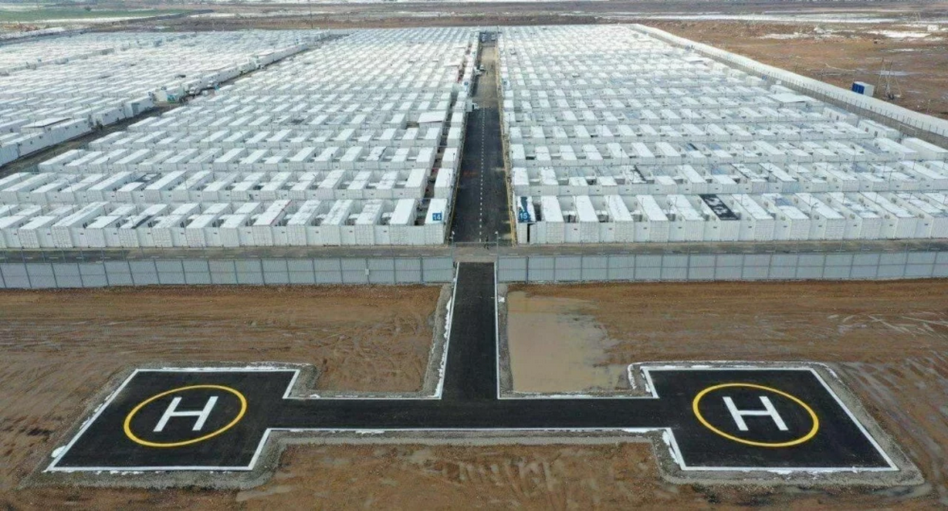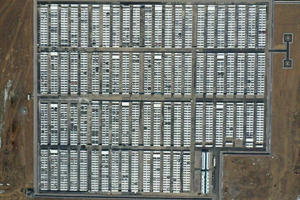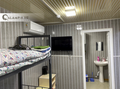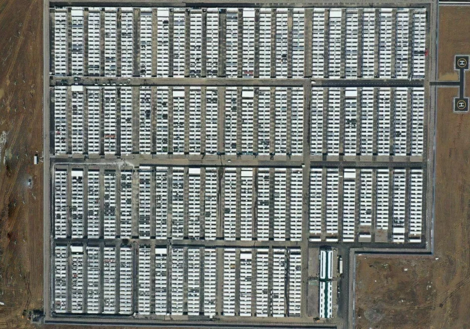Inside, the containers all have the same standardised design: each container is divided into two parts, with two sets of bunk beds (i.e. four beds) in each one. Since residents are supposed to remain in isolation and not go out onto the streets of the camp unless absolutely necessary, the containers are equipped with bathrooms, with a wash-basin, a mirror, a toilet and even a shower. Pictures taken from above also show small open-air areas between the containers which residents have access to. Sheets, blankets, pillows and towels are provided. The containers are fitted with air conditioning, a TV, a telephone and an electric kettle. Drinking water is supplied in refilled plastic bottles. Food, of course, is also provided – made by the camp’s 100 cooks – and was left each mealtime outside the door. 3,000 people in total are said to work at the site.