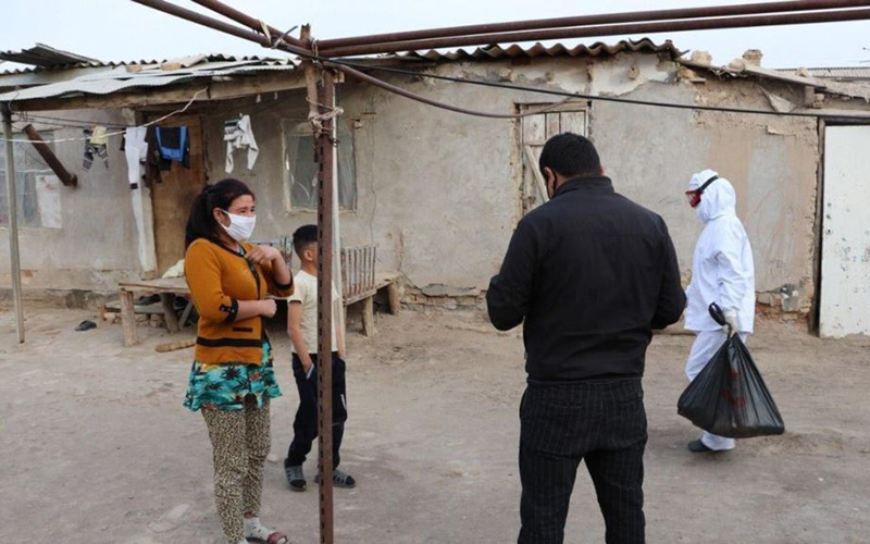 Delivering food parcels to low-income families. Photo by the press office of the Health Ministry of Uzbekistan