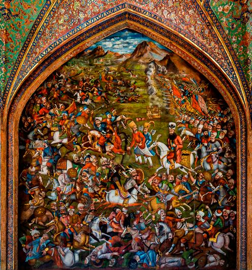 Painting depicting the Battle of Chaldiran between the Ottomans and Persians in 1514. Collection of the Chehel Sotoun Palace museum in Isfahan