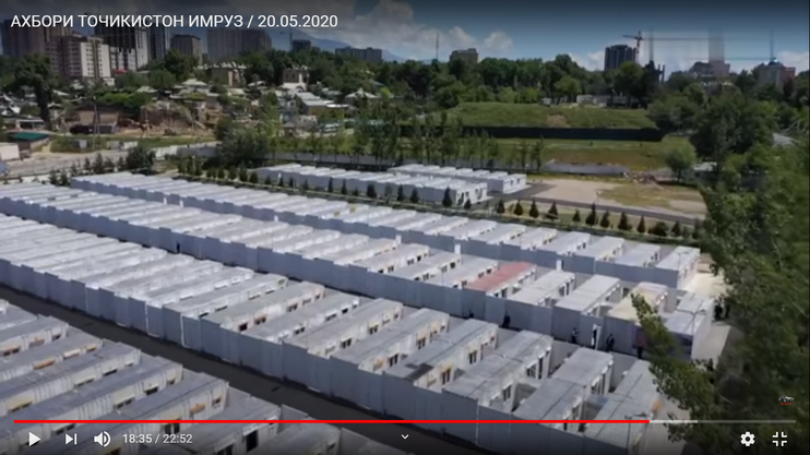 Meanwhile, state TV devoted the entirety of last night’s 23-minute news slot to images of President Emomali Rahmon visiting newly-built makeshift hospitals around the capital. Four new temporary facilities have been set up across the city at sites such as university dorms and the national medical college. Another site designated as a temporary hospital contains 144 shipping containers converted into 2-person accommodation units for use in quarantine camps in Uzbekistan and since donated to Tajikistan (given that these units contain bunk beds, one assumes that this site will be used for less severely affected COVID-19 patients). The total number of hospital beds at these new sites was said to come to 3,000.