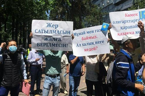 In Almaty demonstrators carrying Kazakh flags and signs calling for an end to Chinese expansion and an amnesty on loan repayments gathered at the intersection of the Abay and Nazarbaev avenues. Another hundred people gathered at the intersection of Kurmangazy Street and Dostyk Avenue. Initial reports state that around 30 demonstrators were arrested.