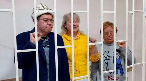 Left to right: Temirlan Sultanbekov, Irina Karamushkina and Roza Turksever. Photo: Kloop.kg Telegram channel