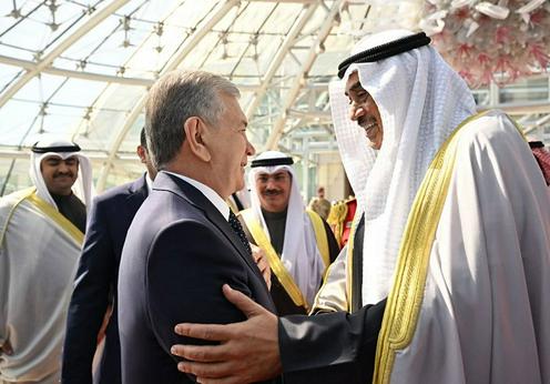 Mirziyoyev visited Kuwait on February 17–18, holding talks with Emir Sheikh Mishal Al-Ahmad Al-Sabah and Crown Prince Sheikh Sabah Al-Khalid Al-Sabah. He also met with key government officials, major business leaders, and financial institutions of the emirate.