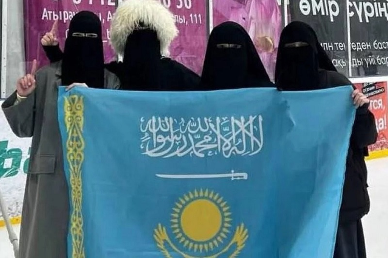 Authorities in Atyrau have launched a criminal investigation after a photo surfaced showing four women in niqabs holding a modified version of Kazakhstan’s national flag featuring Arabic script, Kursiv.kz reports. The case is being pursued under the legal provision concerning desecration of state symbols, which carries a maximum penalty of two years in prison.