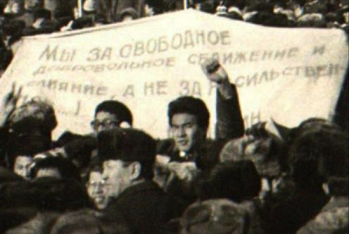 Demonstration of Kazakh youth on Brezhnev Square, now Republic Square. Almaty, December 1986. Photocopy from the Central State Archive of Almaty