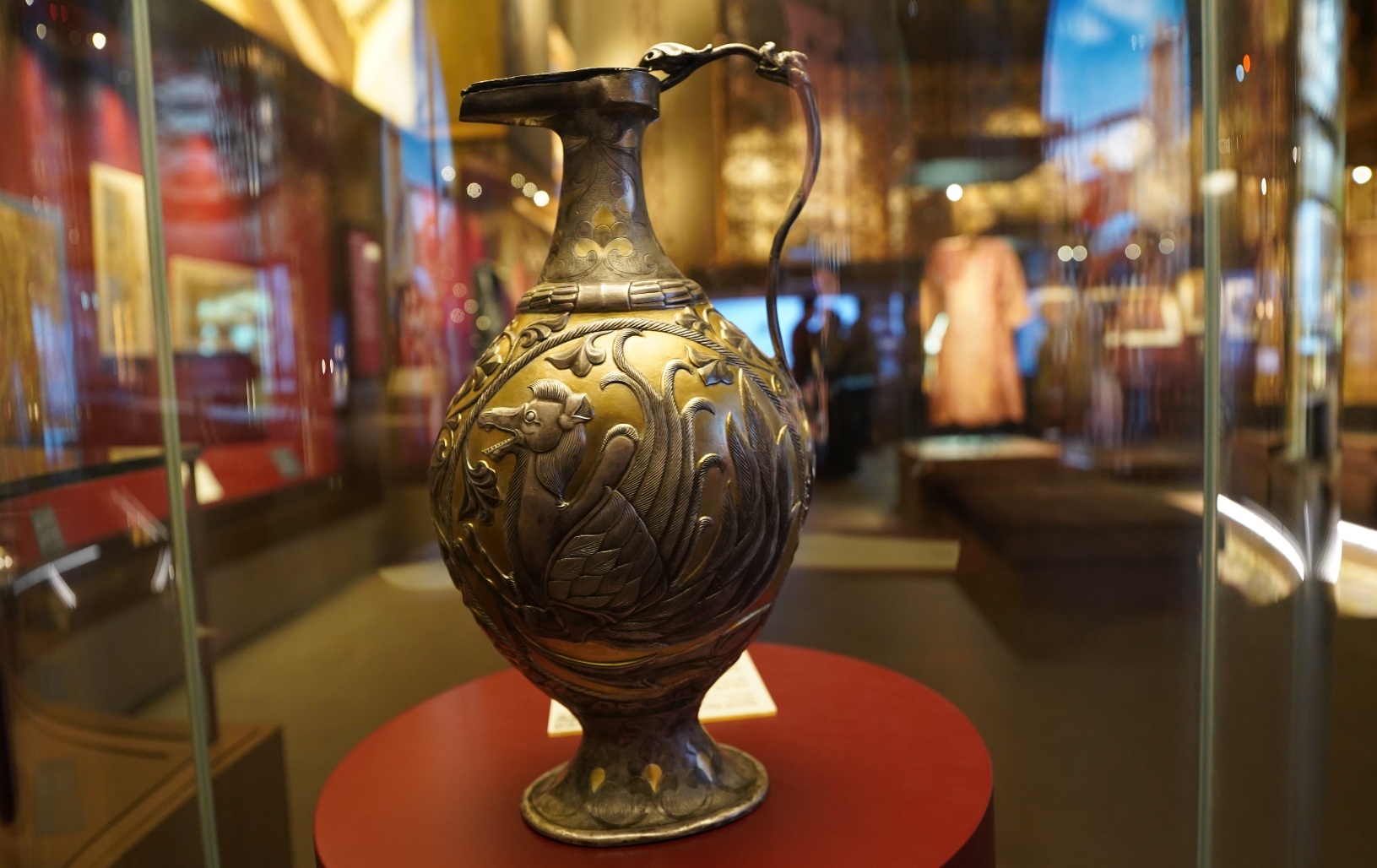 The artifact has been placed in the Pre-Islamic Period hall. The vessel is regarded as one of the most valuable examples of early medieval metal artistry. Between the 5th and 8th centuries, a tradition of decorating metal objects with images of animals and mythological creatures—symbolizing strength, protection, and prosperity—was widespread in Central Asia.