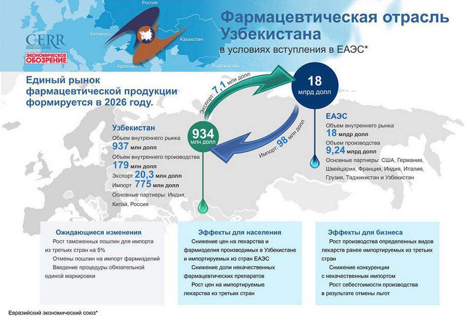 Yet perhaps the greatest “con” of entering the EAEU is geopolitical. Russia, as the dominant partner in the union, could significantly increase its influence in Uzbekistan. And then the risk will grow of a worsening relationship for Tashkent with its western partners, above all the USA. This is sure to have an impact on investment, since America is one of the major players in terms of investment in the Uzbek economy. Besides this, there is the risk that it will further delay Uzbekistan’s entry into the World Trade Organisation (WTO), which the country has been waiting to join since 1994. So joining the EAEU is not as unequivocally positive a step as the CERR’s analysts make it out to be. The infographics’ small print occasionally does also note the difficulties that Uzbek businesses will come up against, for example the increased cost of pharmaceutical products. Yet against the backdrop of the projected economic growth this is made to look insignificant.